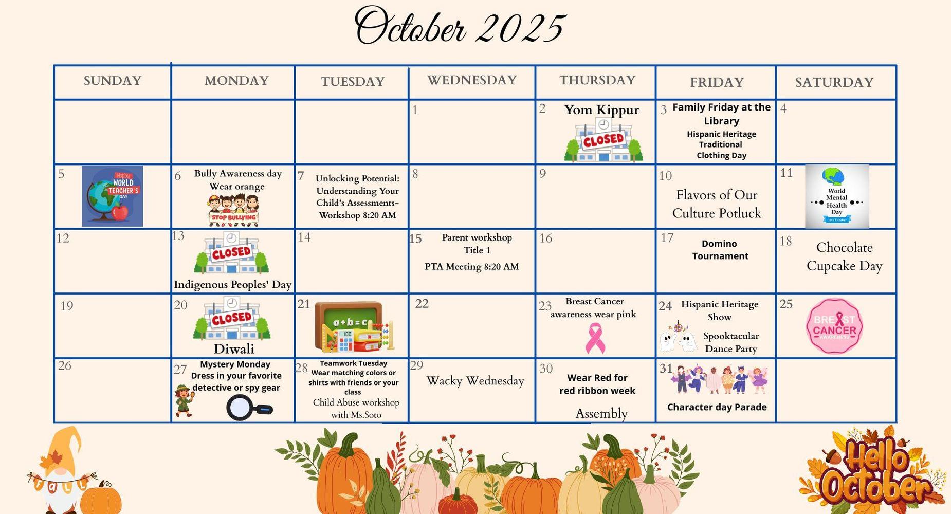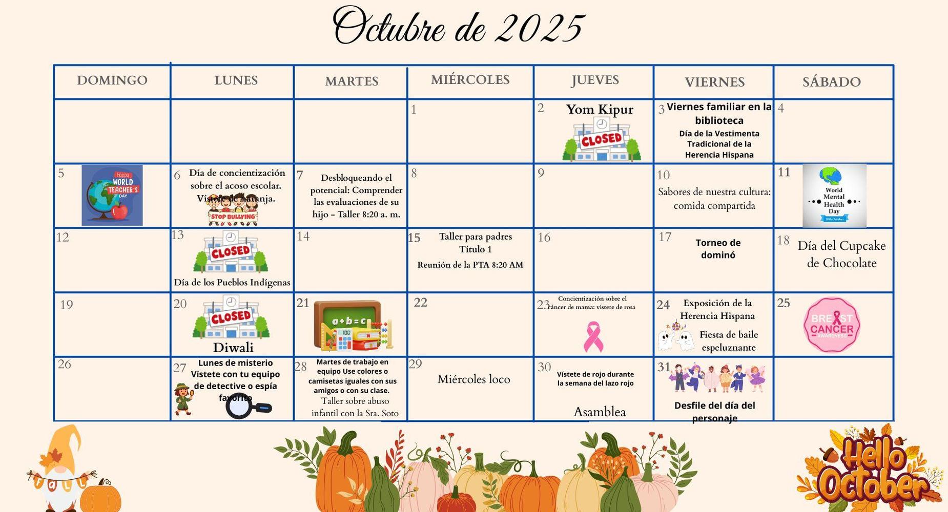 Estamos emocionados de darles la bienvenida al edificio y de presentarles a nuestro maravilloso equipo. Esta es una excelente oportunidad para conocer más sobre el salón de clases de su hijo, las rutinas diarias y lo que pueden esperar durante este nuevo año escolar.
